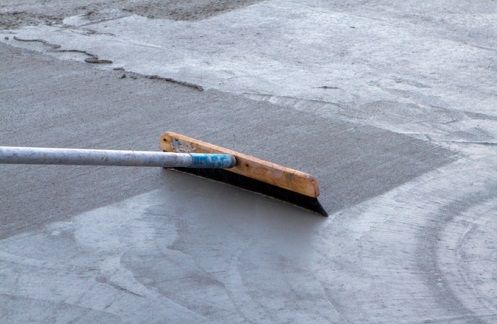 Данная фактура создается путем проведения по поверхности только схватившегося бетона специальными жесткими щетками. Щетки оставляют на бетонной поверхности следы-канавки, создавая эффект «царапанного бетона». Канавки могут протягиваться как в вертикальном, так и в горизонтальном положении.