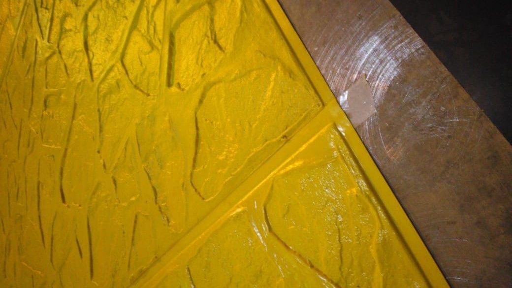 После определения фактуры, она отпечатывается на специальных листах-матрицах. Листы-матрицы могут быть различных размеров, их главное предназначение максимально точно скопировать и передать бетонной поверхности контур и фактуру исходного образца.