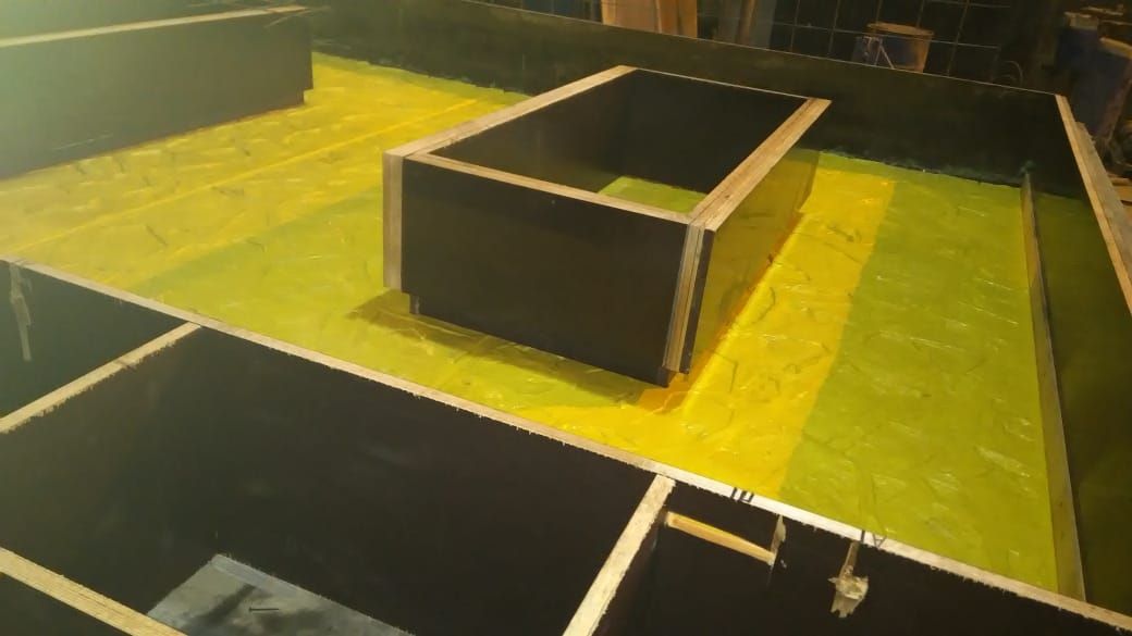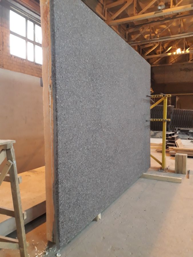 Перед заливкой бетонной смеси наружного бетонного слоя, фактурные листы-матрицы укладываются и закрепляются на формовочном столе.