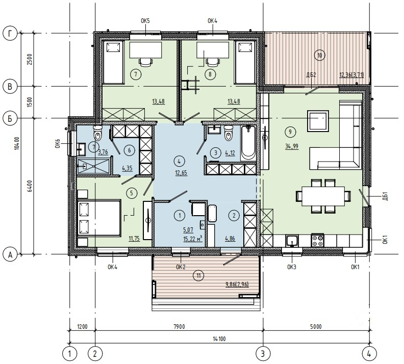 Компактный и функциональный одноэтажный дом площадью 109 м²
